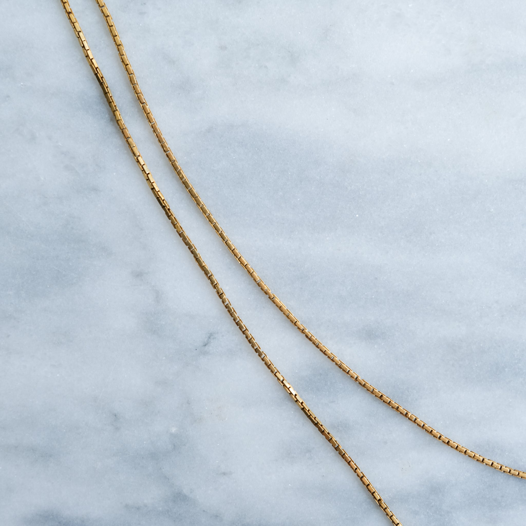 - In fine antique, pre-owned condition with light surface wear consistent with age. The dog clip opens and closes in good working order, although care must be taken to ensure the clasp is closed securely. Solder marks present on the attached end connected to the hand-clasp. Some slight kinks on chain. Not noticeable when worn