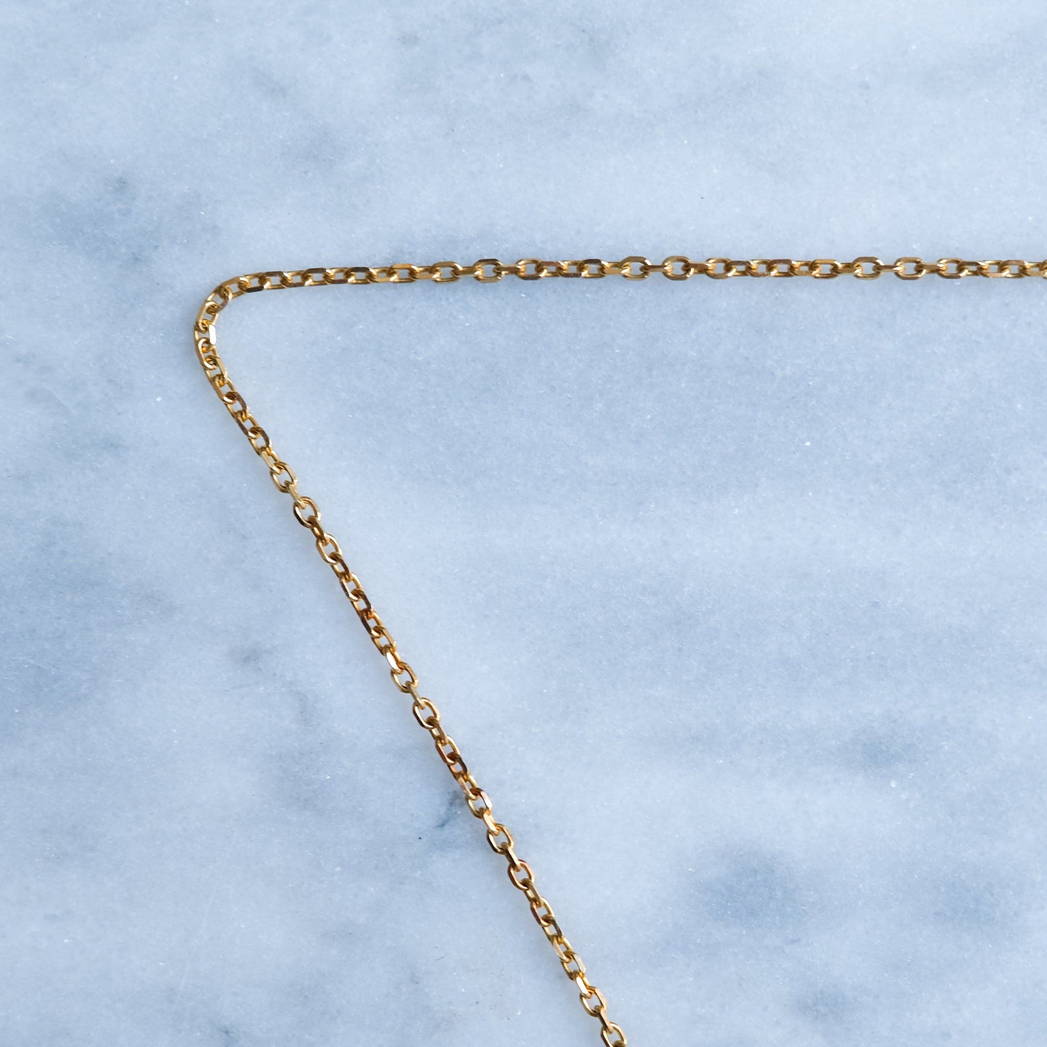 Stamped with 750 hallmark for 18K gold fineness, the chain layers effortlessly with other pieces for a beautifully styled neck mess. Whether worn solo or as part of your favourite stack, this piece adds a pop of blue and style.