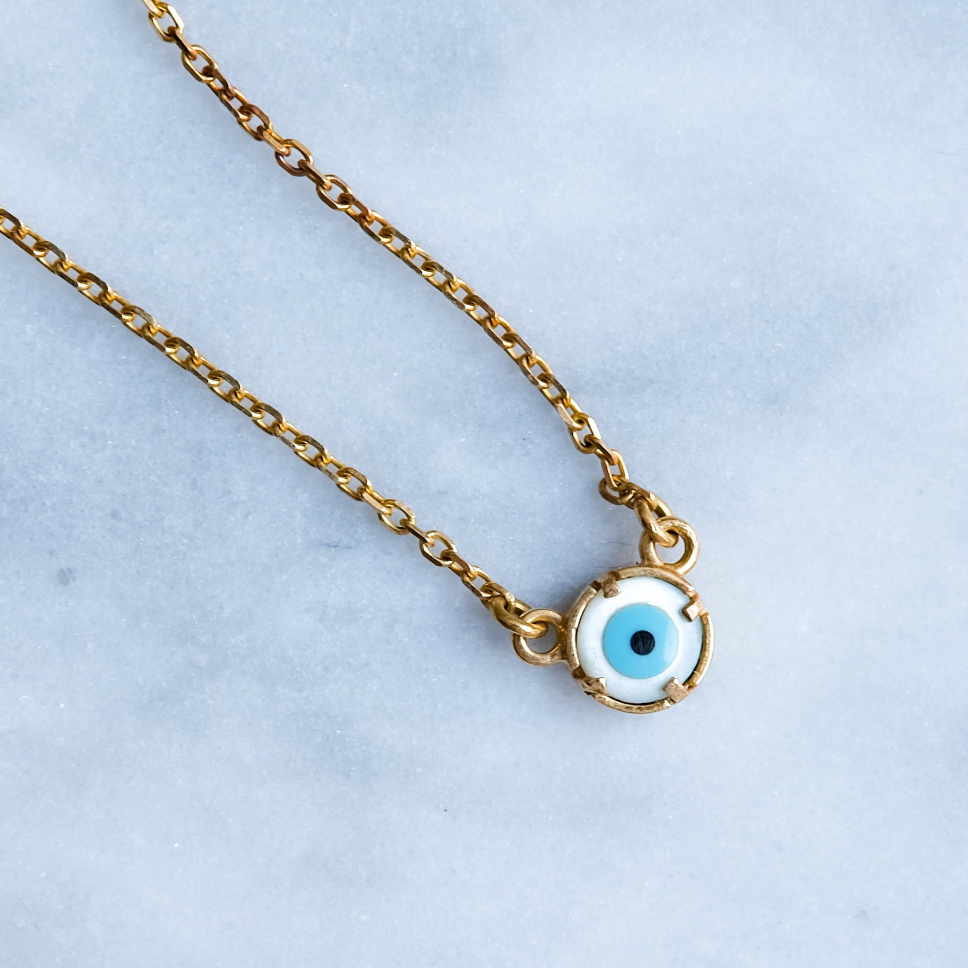 The Evil Eye motif is a sign of protection against the malevolent gaze and also symbolizes good fortune, blessings, power, and strength. The use of this amulet dates back to Mesopotamian times and ancient Morrocco and is a popular motif that is worn to this day.