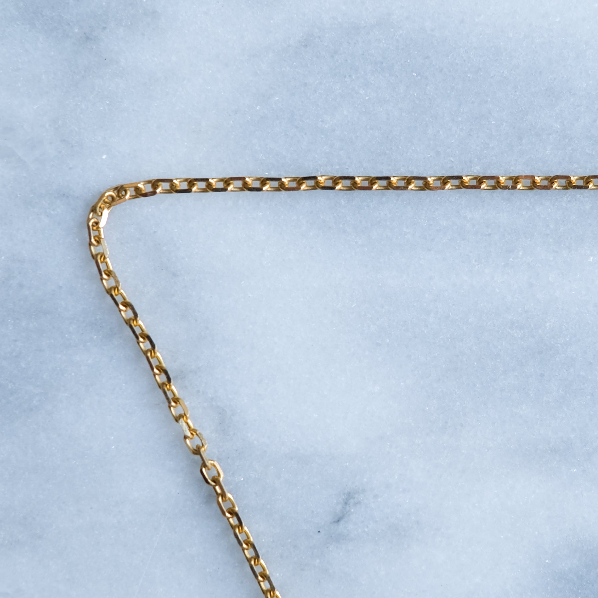 The Hamsa is a sign of protection against the evil eye and also symbolizes good fortune, blessings, power, and strength. The use of this amulet dates back to Mesopotamian times and ancient Morrocco and is a popular motif that is worn to this day. Stamped with 750 hallmark for 18K gold fineness, the chain layers effortlessly with other pieces for a beautifully styled neck mess.