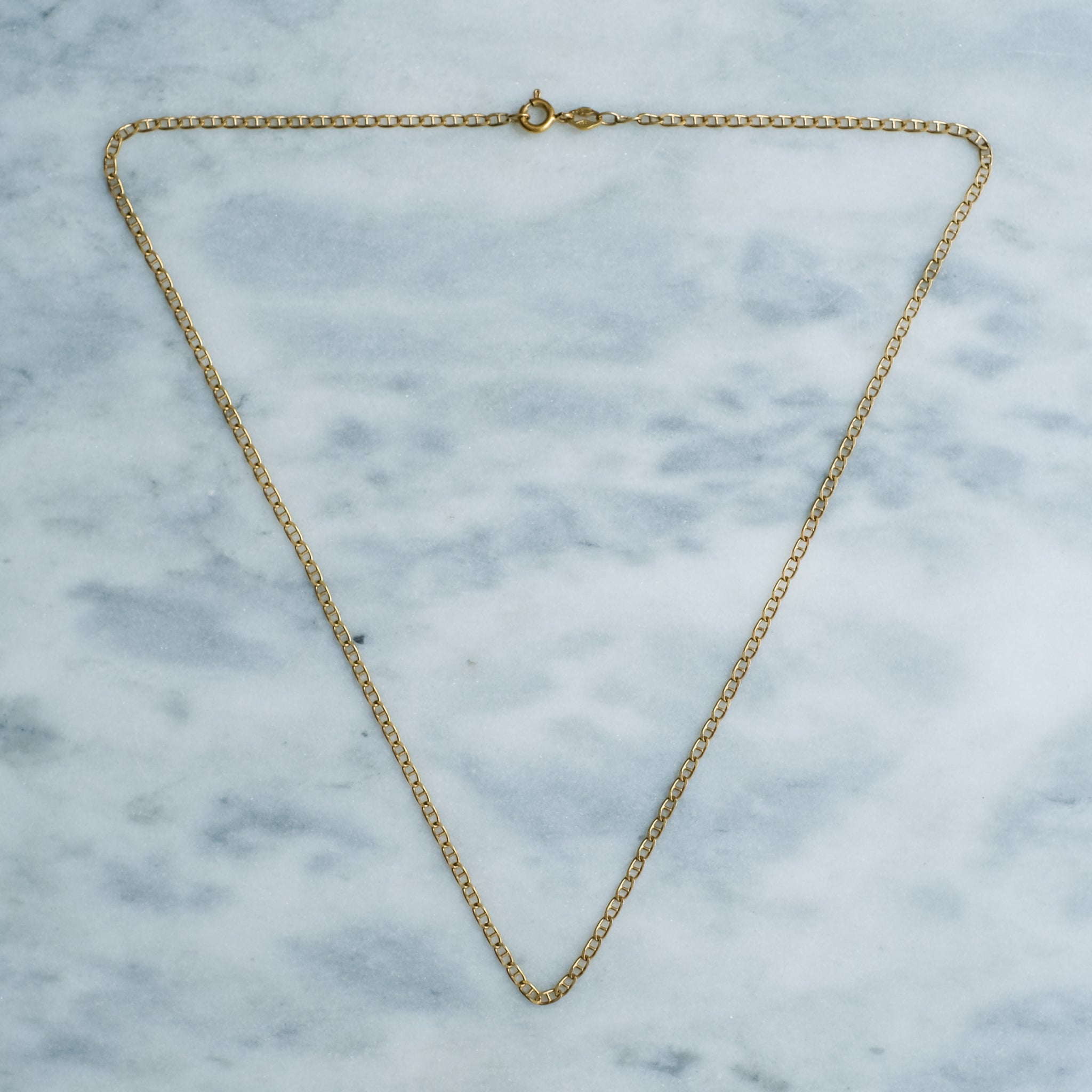 A classic mariner-link chain crafted from 18K gold with a lovely rose tint and finished with a spring ring clasp closure.