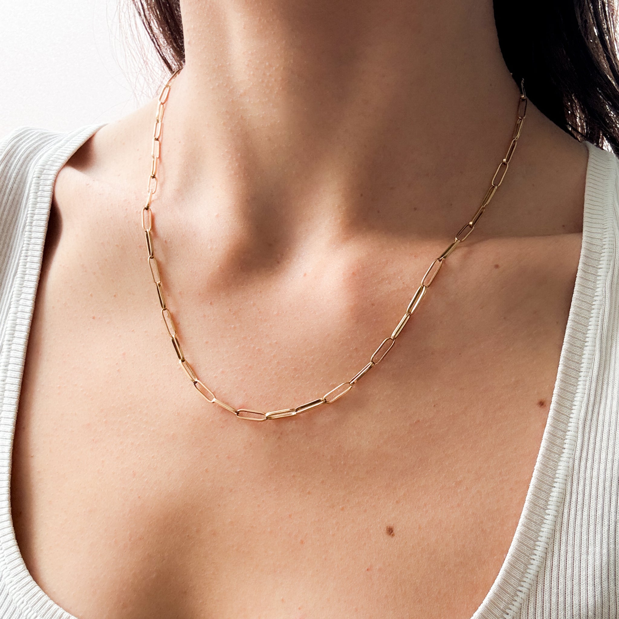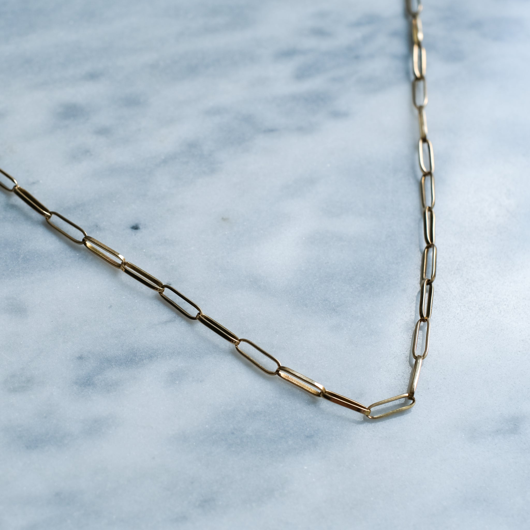 The paperclip-links glow and catches the light beautifully and the length of 19 inches makes it the perfect layering companion in a neckmess.