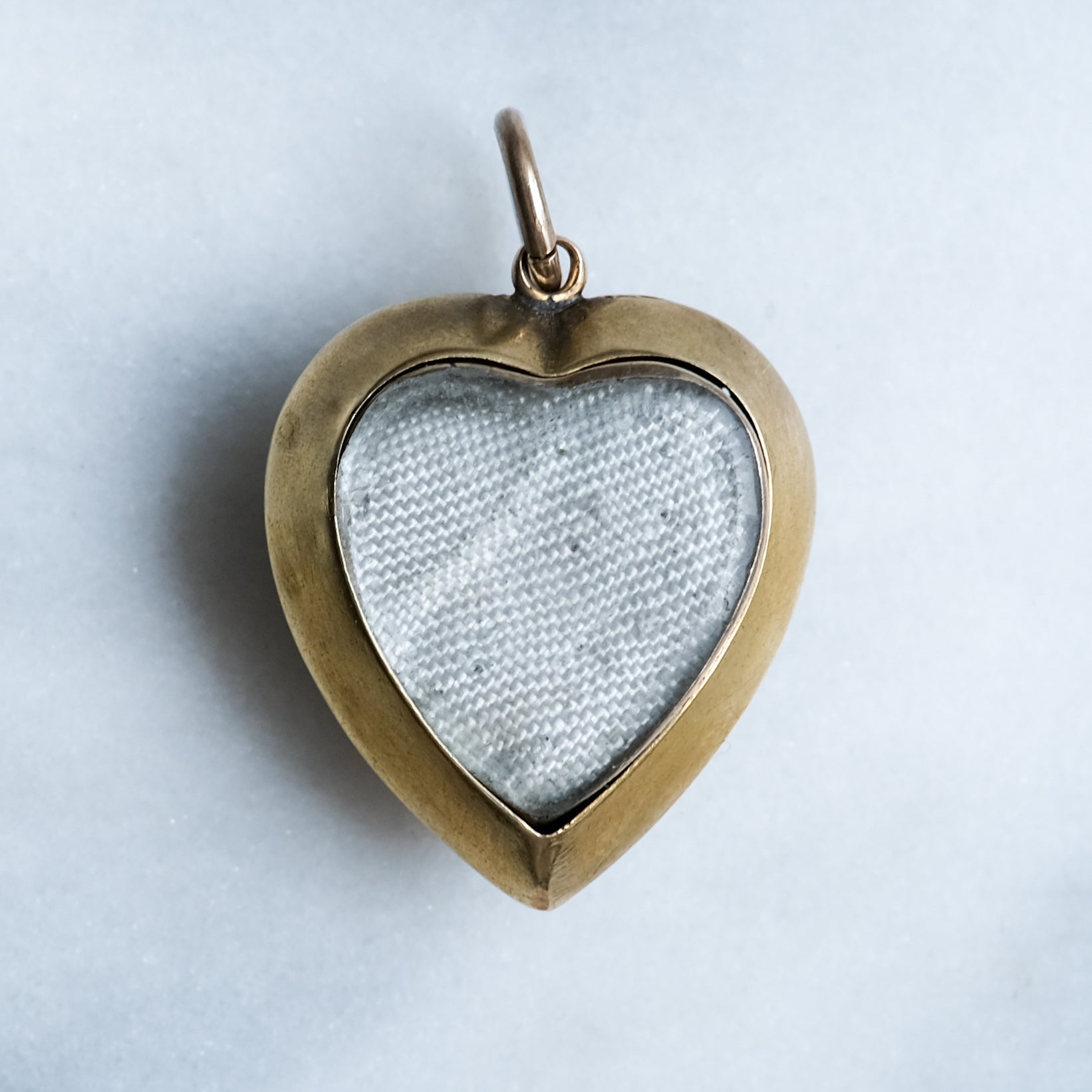 The front of the heart is adorned with an intricate engraved design, while the reverse reveals a glass compartment lined with white fabric, perfect for holding a sentimental keepsake.