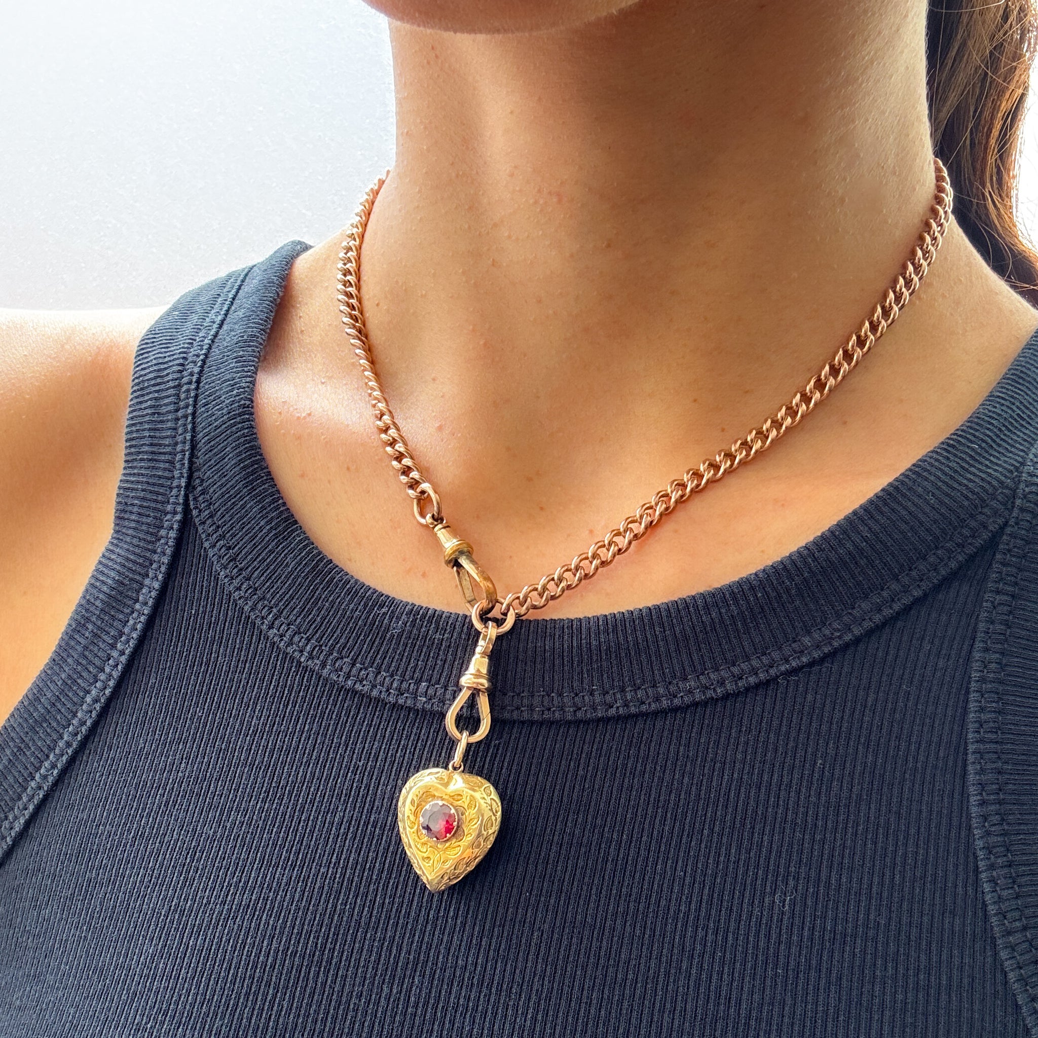 • Load image into Gallery viewer, Antique Engraved Garnet Heart Locket Pendant