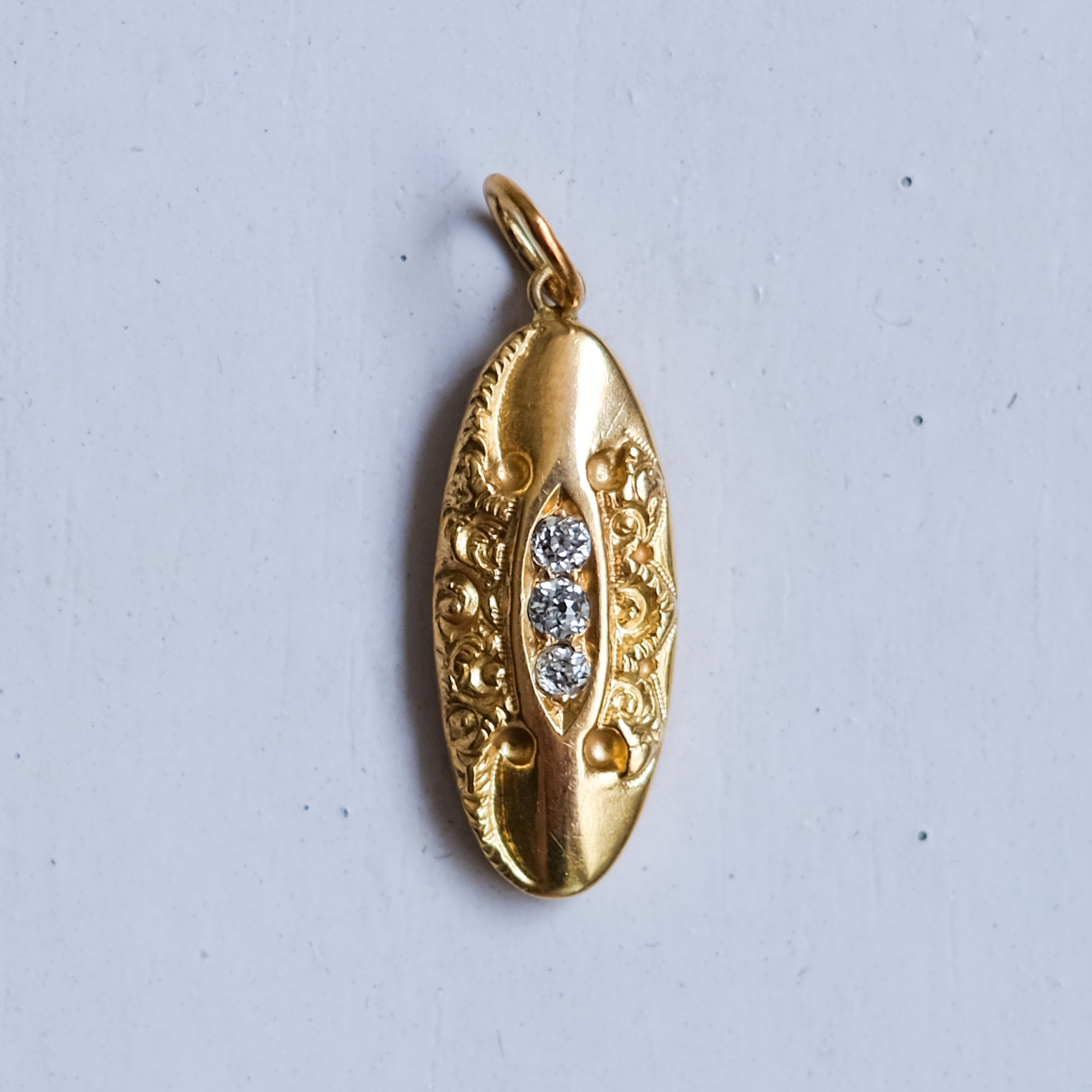 Antique Three Diamonds Elongated Oval Repoussé Pendant - B