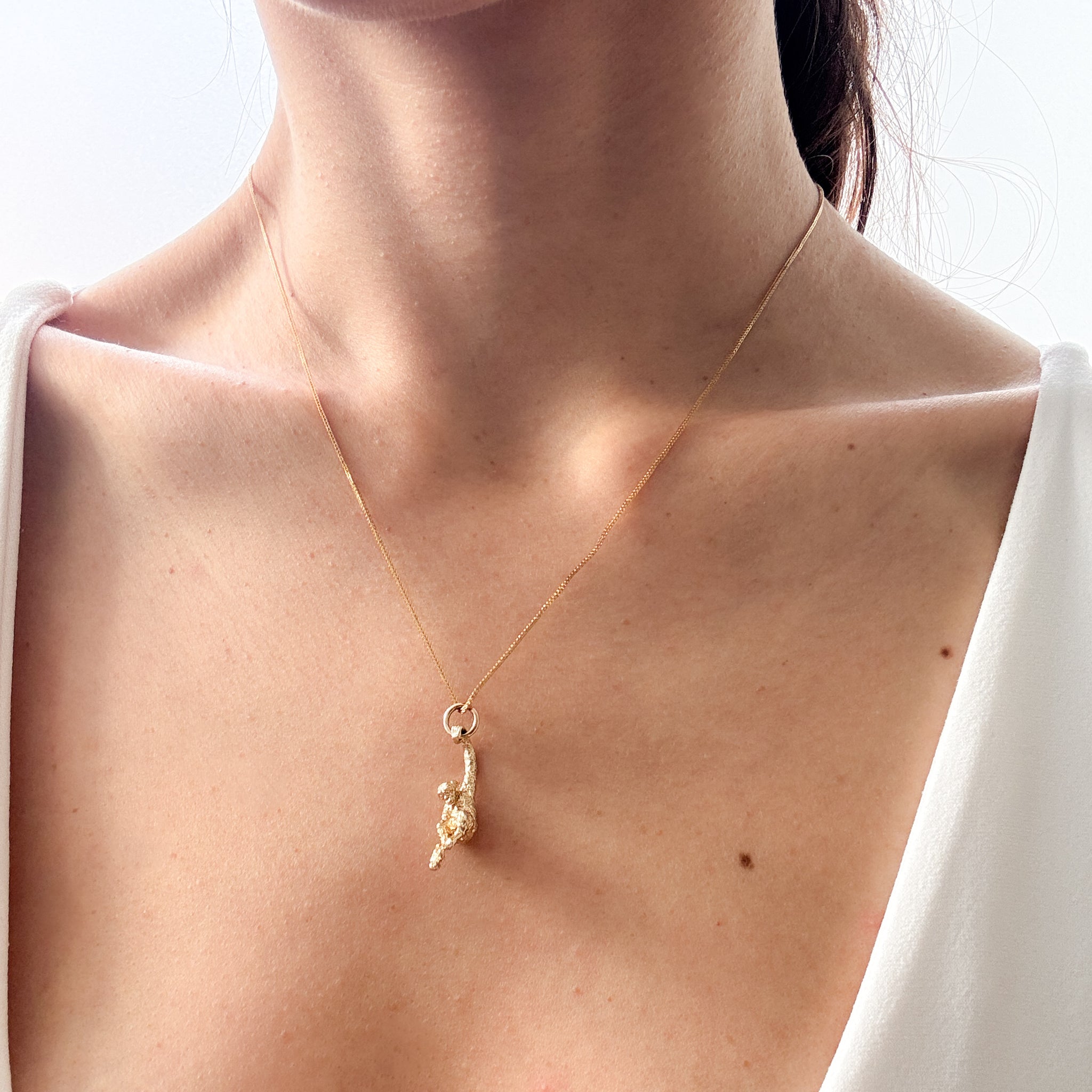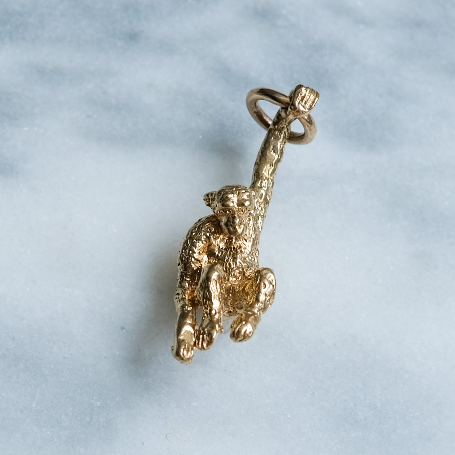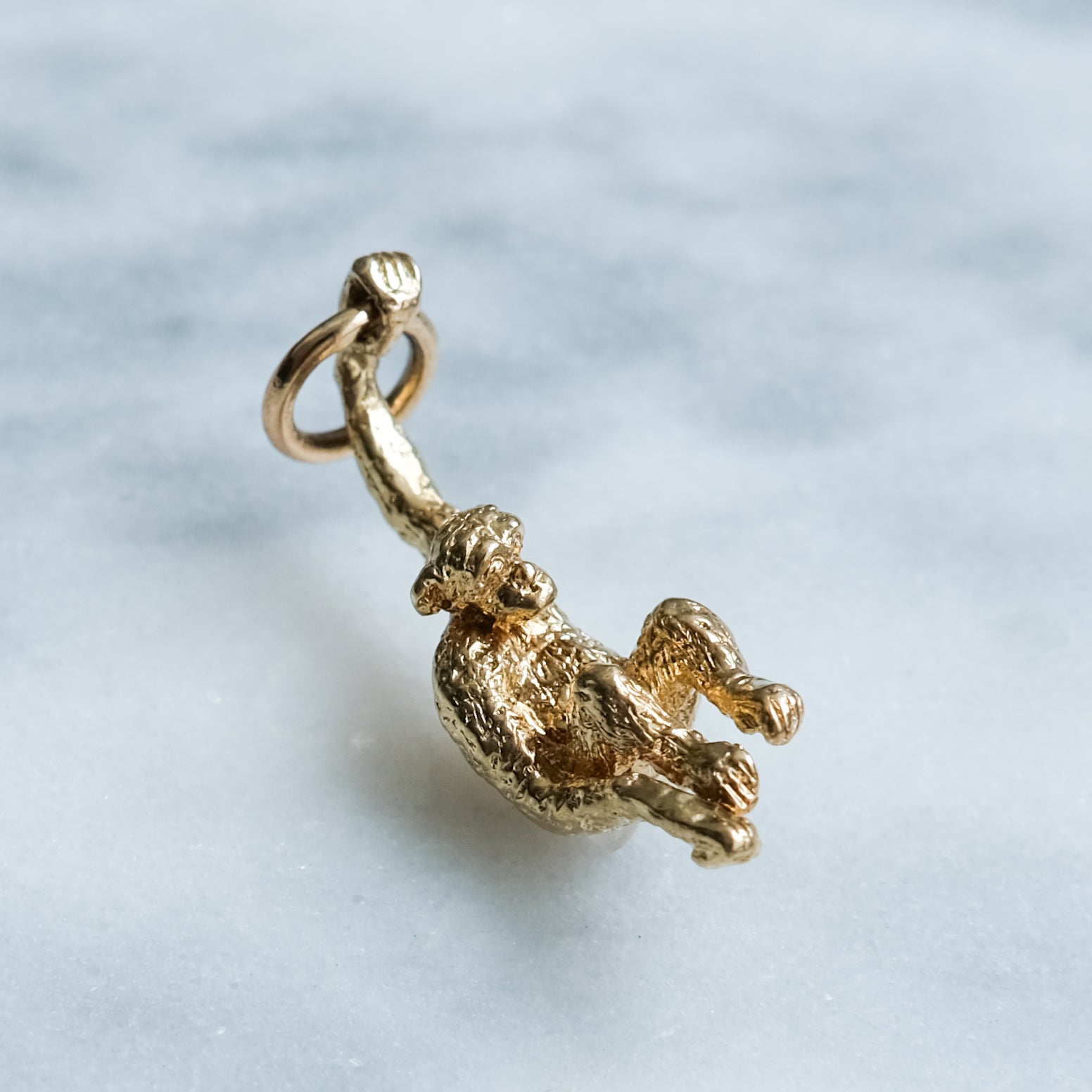 This delightful cheeky monkey charm was crafted in 1967 from warm 9K gold. With its mischievous grin and playful stance, the little monkey, hanging from one arm, radiates charm and personality. It is incredibly detailed with a pleasant face and etched fur throughout. A fun piece to add to a charm jumble.