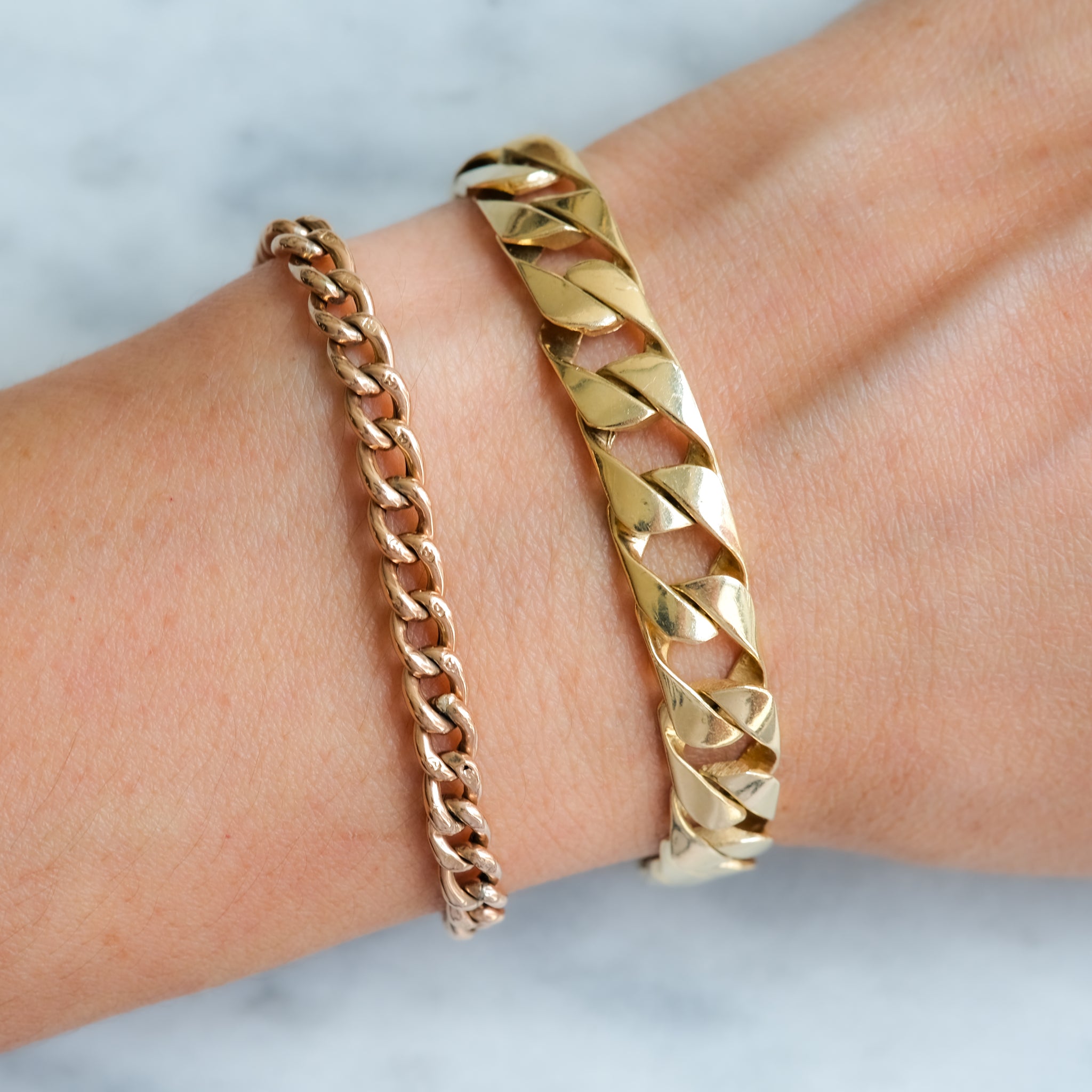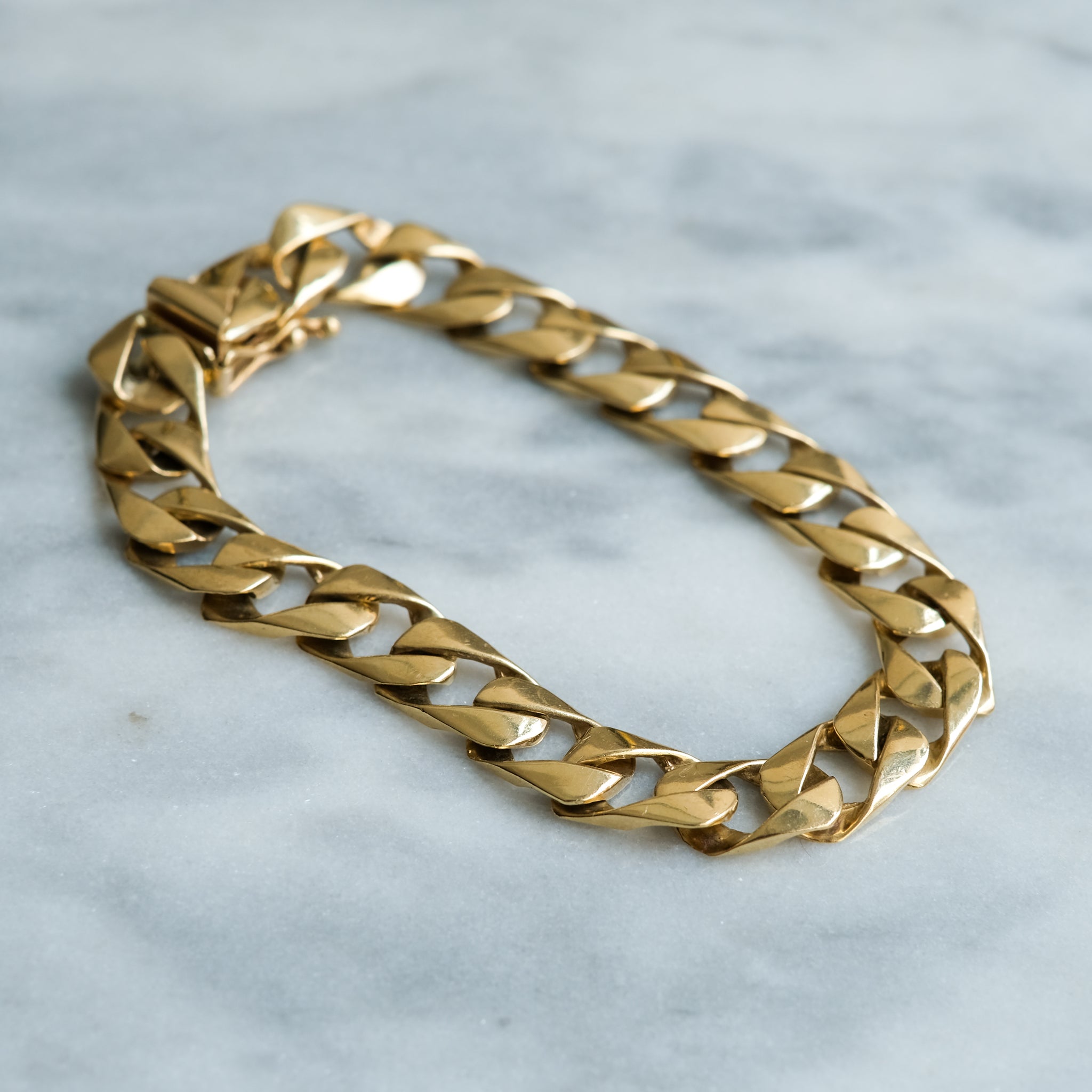 A classic flat Curb-Link bracelet, beautifully crafted in 14K yellow gold that contours gracefully to the wrist. It’s finished with a secure box clasp and safety catch for added peace of mind.