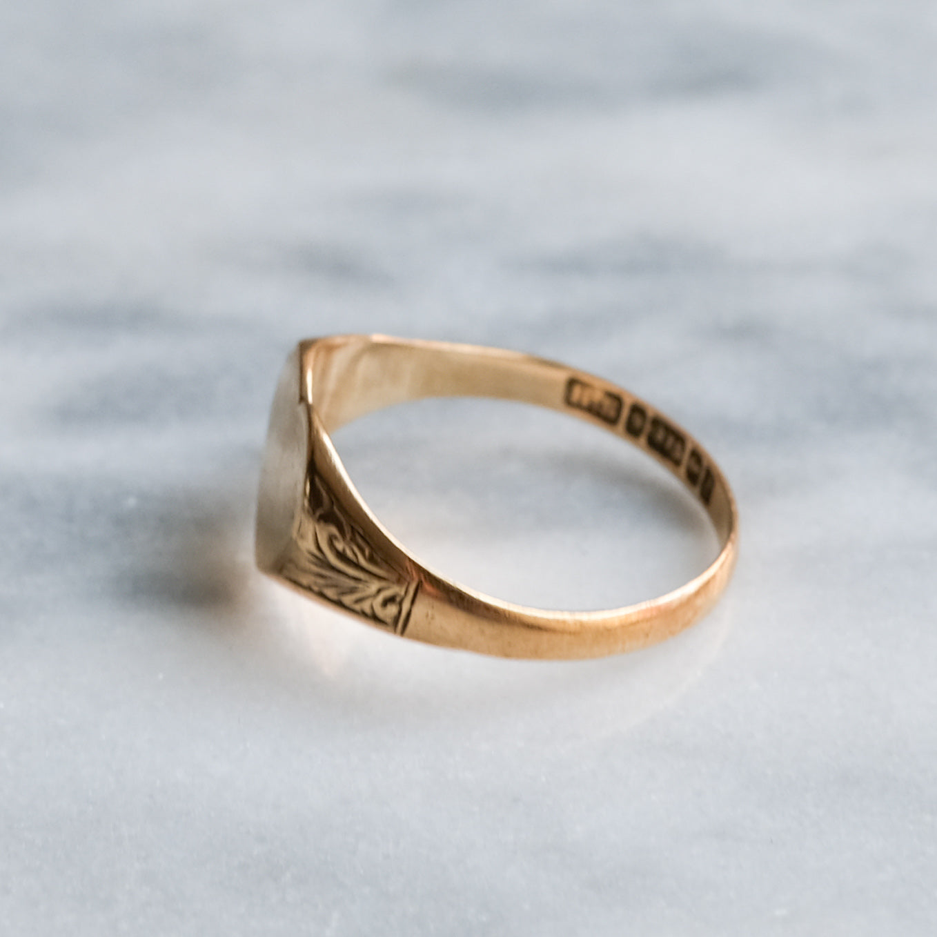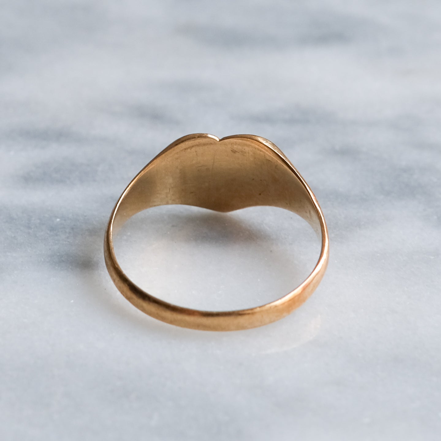 A sweet yet striking piece you’ll find yourself reaching for time and time again, this vintage 9K yellow gold signet ring features a softly rounded heart at its centre—symbolising love, loyalty, or a connection close to the heart.