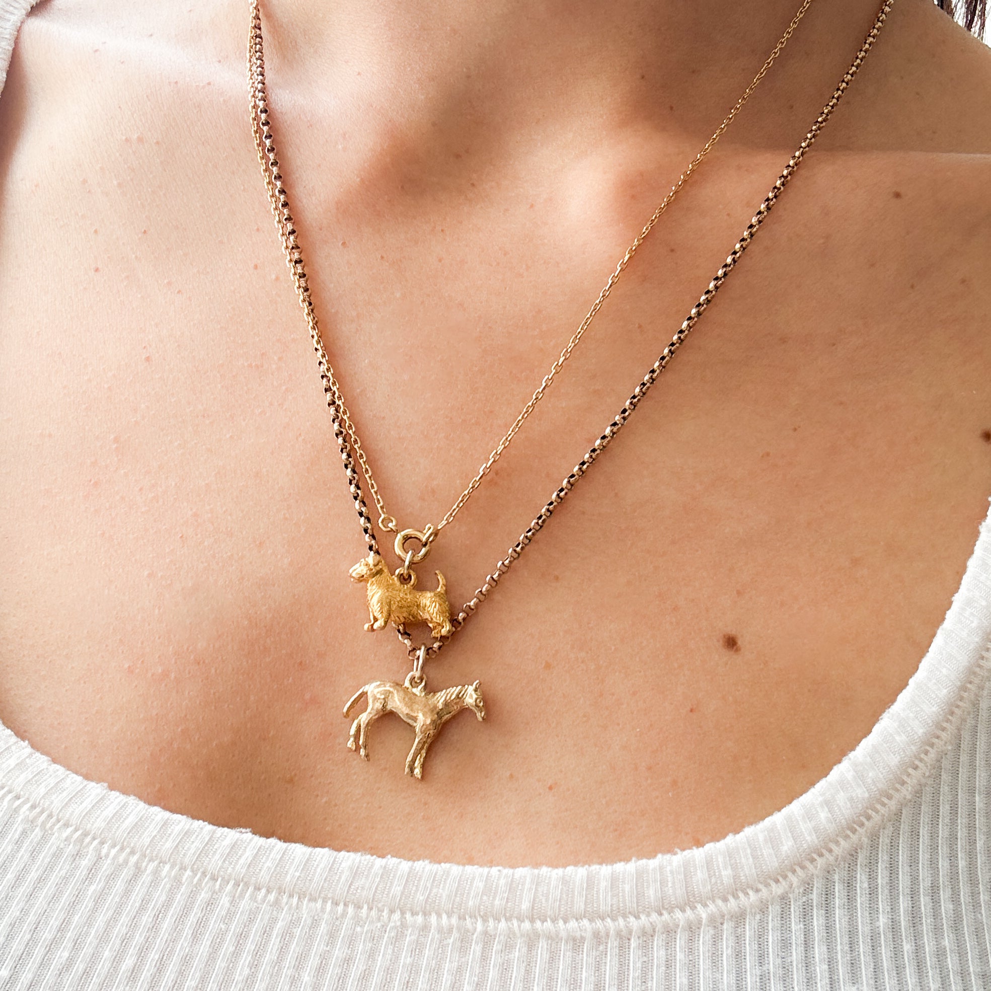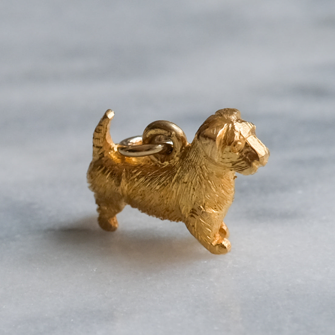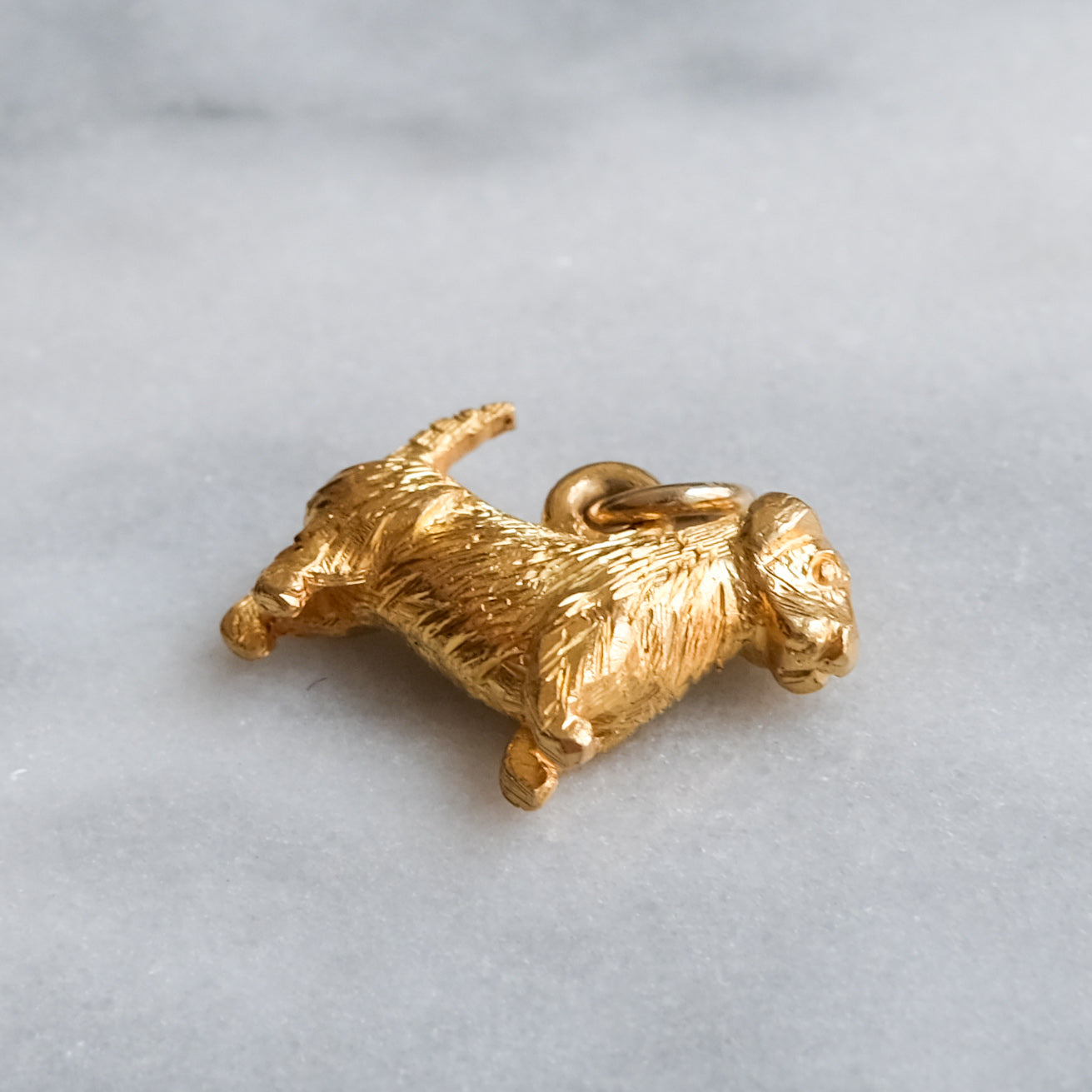 A delightful vintage Terrier charm crafted in warm 9K yellow gold, featuring finely textured fur details that bring this little pup to life.