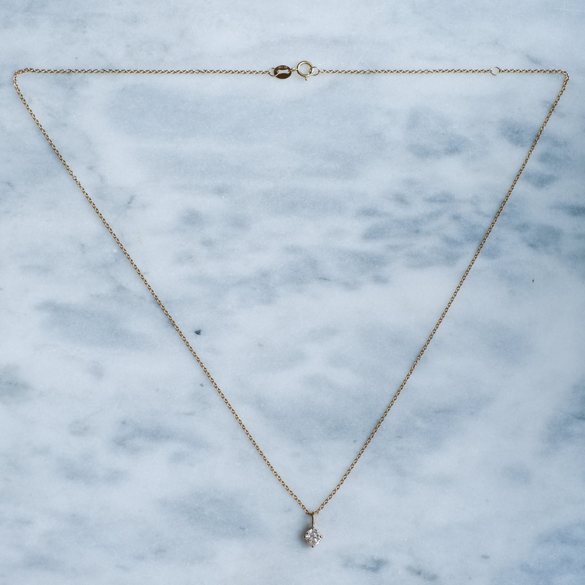 A refined classic with antique allure—this adjustable 18-inch cable-link chain in luxurious 18K yellow gold  features a stunning old European-cut diamond solitaire pendant, prong-set, imbuing the piece with the romance and brilliance of a bygone era while remaining effortlessly wearable today.