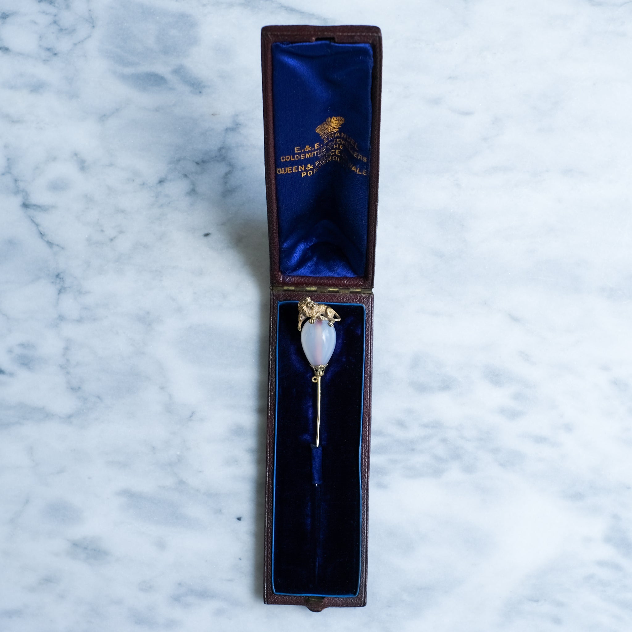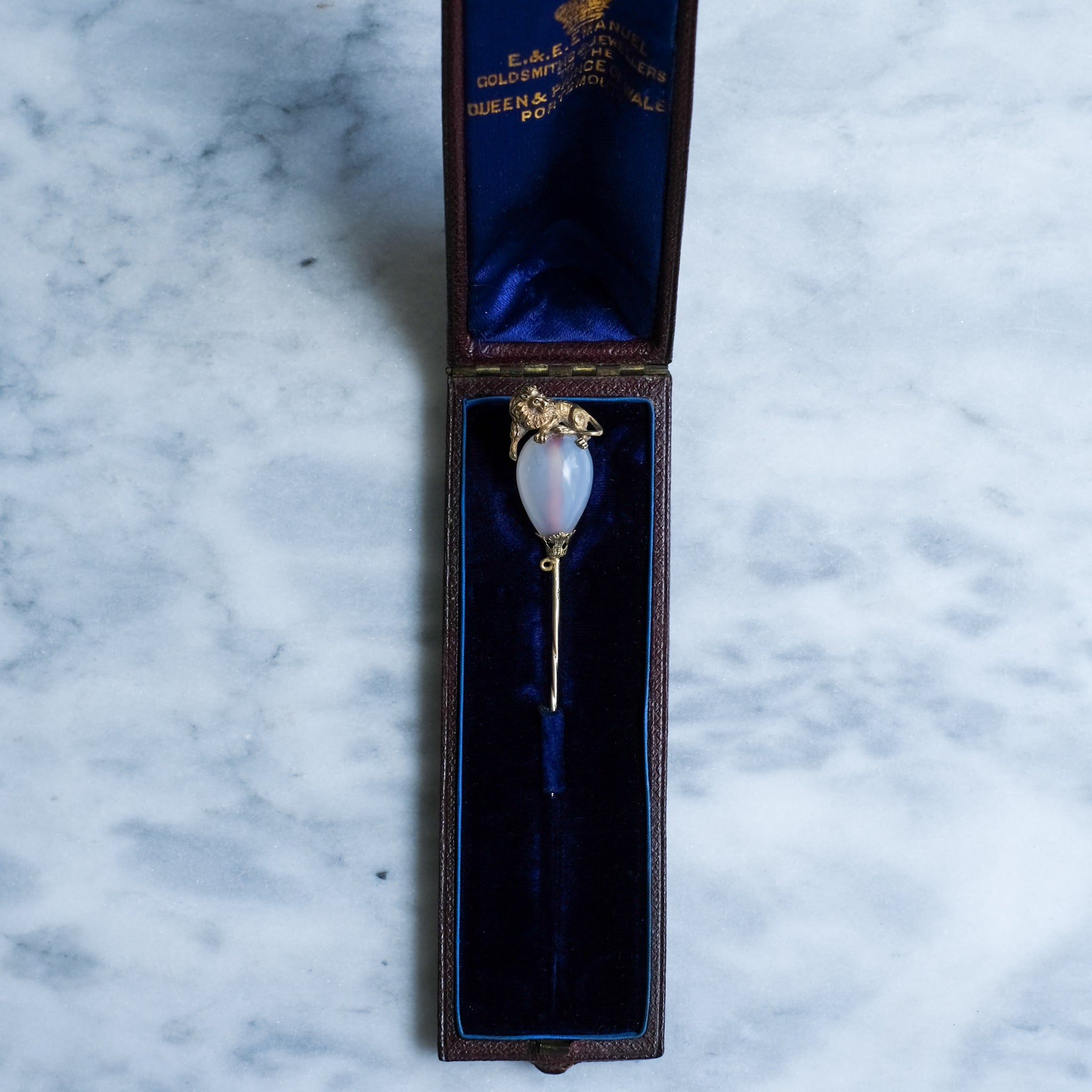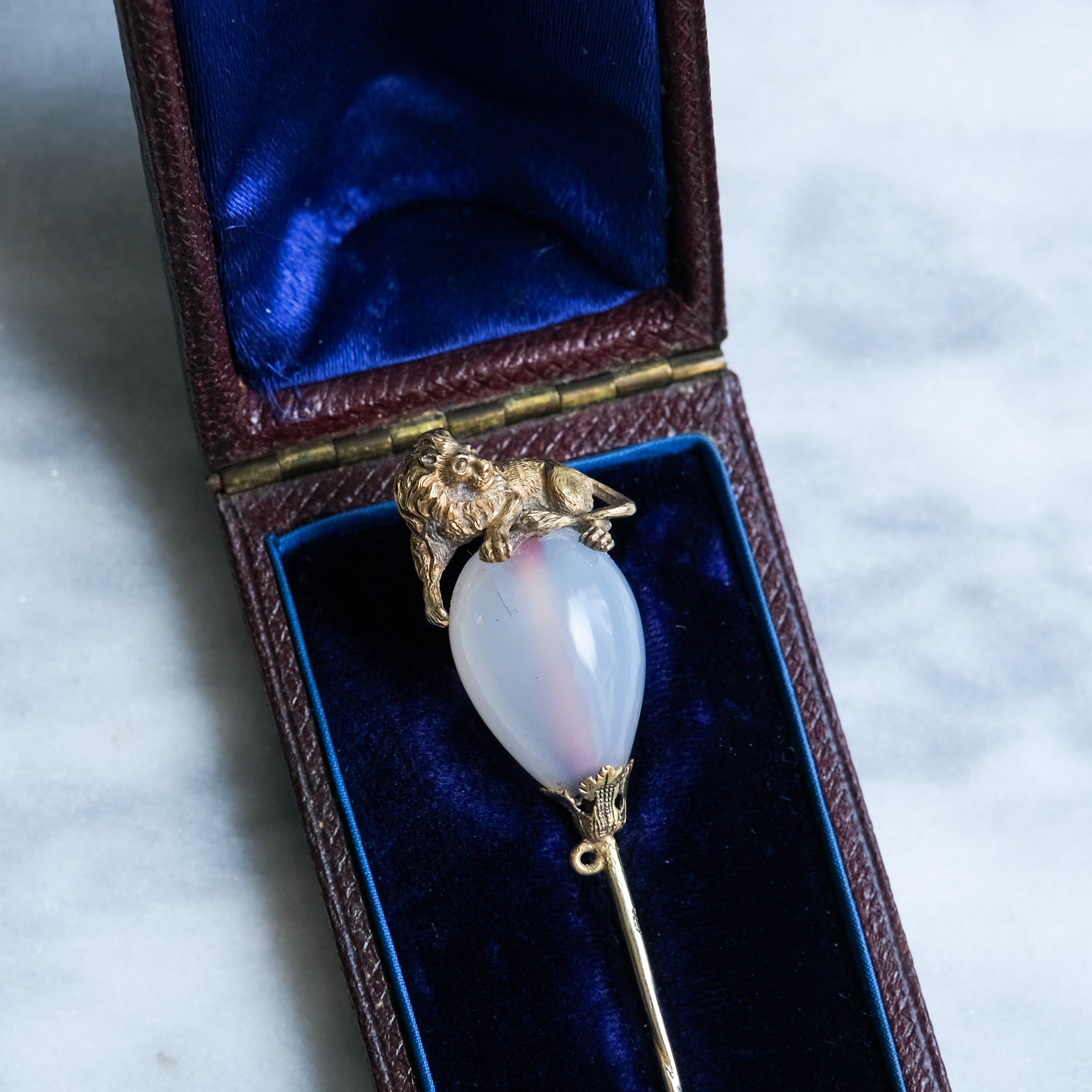 Antique Victorian Agate Lion Stick Pin in Original Case